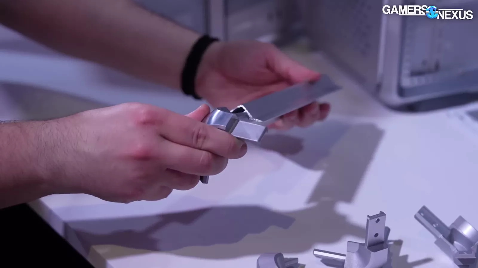 The case in the image above, which goes by "Cooling X,” and uses the company’s new MF frame system. If you look at the corner, you can see the individual columns. At Computex, we saw it as a pre-built system.