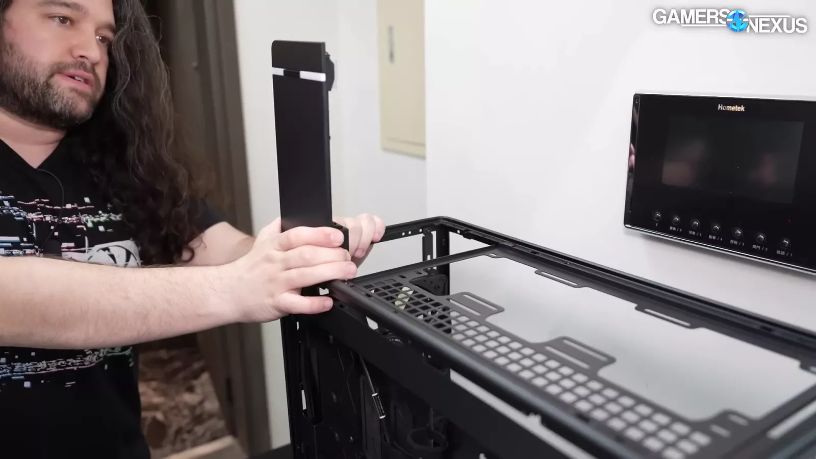 The frame is aluminum and the motherboard tray is steel, which we think is .8 millimeters thick. Aluminum is very expensive. Sometimes case companies use it to employ a “premium” feel to cases. The plus side is that it makes the case a little lighter but will also make it more expensive. Currently, there are also additional tariffs on aluminum imports into the US, which could affect pricing even further. The case will be over $300. We’ll find out more probably towards the end of the year.