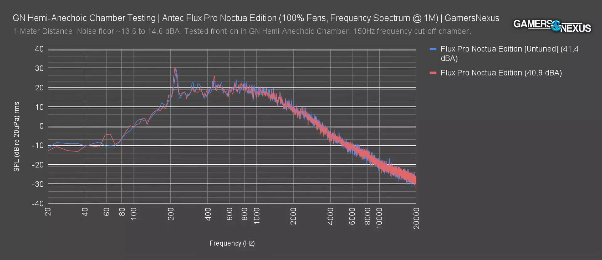 We’ll start testing with the hemi-anechoic chamber this time, seeing as the case is the same other than the fan layout. That makes frequency spectrum analysis more interesting.