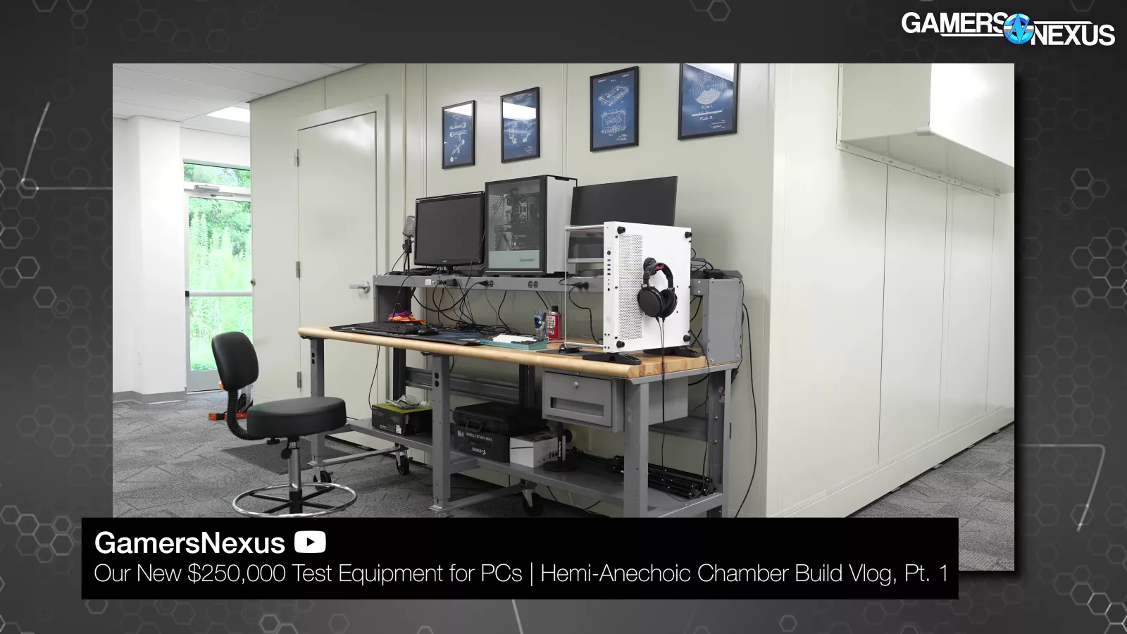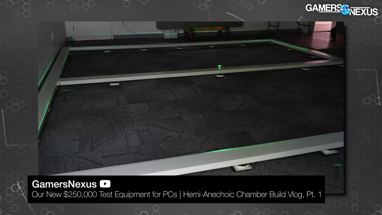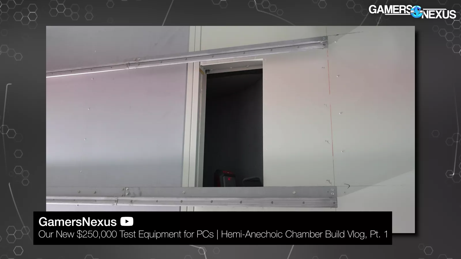 This is our hemi-anechoic chamber. We’ve used this close to around 1,000 times now in the past 3 years, thanks to a mix of handheld gaming system, CPU cooler, case, and video card testing.