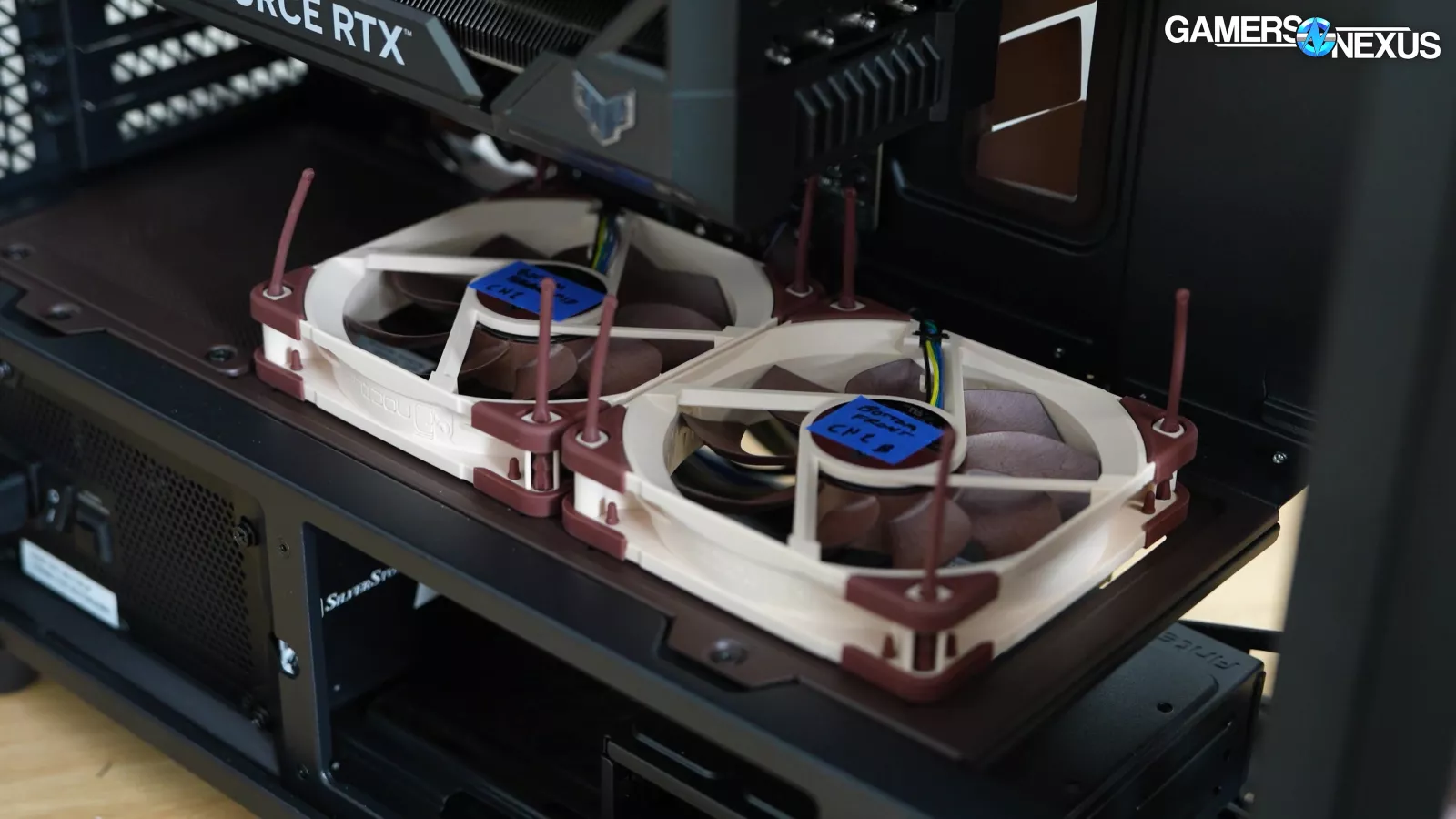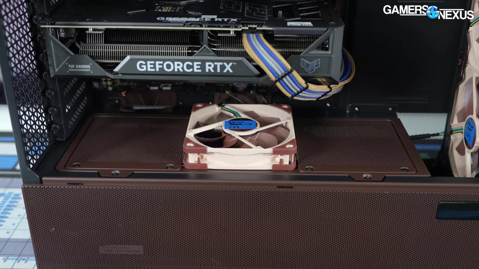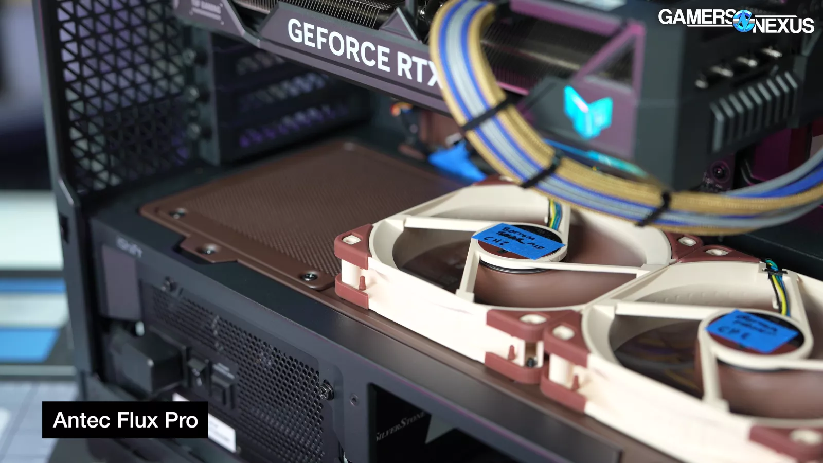Second, a test with one of the shroud-top fans moved to the top of the case as intake in front of the CPU cooler. Third, tests with the original Flux Pro fans arranged as they were in the original review. These should theoretically match the original Flux Pro results, but since there was some variance, we'll use the Noctua Edition + Flux Pro fans as the point of comparison.