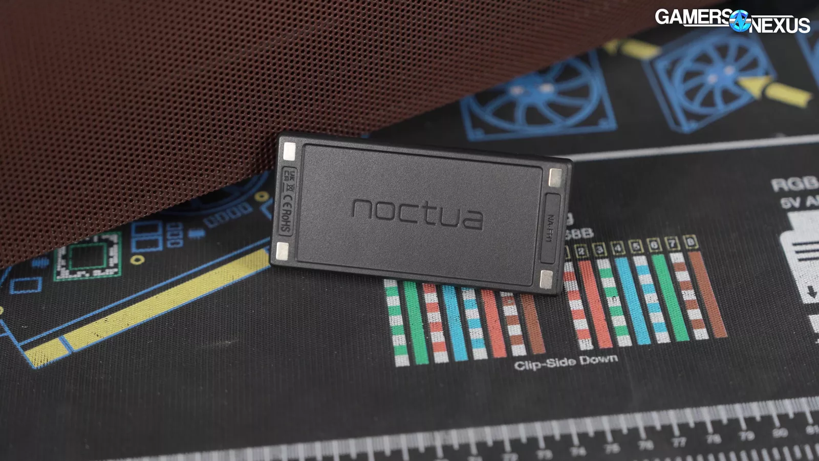 The Noctua Edition fans in the same, like-for-like configuration ran at 39 degrees Celsius for the GPU, about 1-1.4 degrees improved on the GPU temperature of the same case with the Flux Pro fans (at 40.4 degrees). We’ve pruned the 2-year-old Flux Pro test here since we’ve made some changes to cable management in the GPU area that might cause more result drift than you’d see in a non-A/B test.