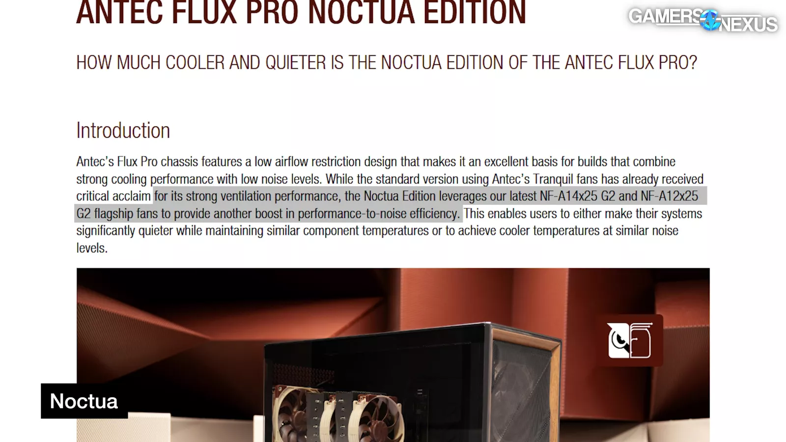 - The Antec Flux Pro Noctua Edition is, ultimately, a Flux Pro but with Noctua fans and accessories