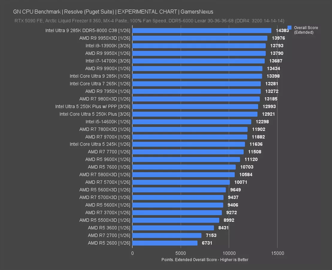 The big move here is price. Intel’s 245K was over $300 and its 285K, which is now often beaten or tied in gaming with the 250KP, is $530 to $560. The $200 CPU being an actually reasonable gaming part is great news. It’s actually competitive with AMD and sometimes better than it in a lot of price-for-price situations in non-gaming tasks. That’s good news. Intel’s 14600K gives it some trouble in some places, which does make it look a little bad sometimes, but in the very least, we’re just happy to see literally anything remotely affordable in this market because it has been really bad for a long time now. It's tough because the memory pricing is still kind of ruining everything, but in a total vacuum, prices come down and their performance has gone up. And that's what Intel needs to do if they want to start competing. And we’re starting to get some of the 2017 and 2018 era AMD 1000/2000 Ryzen vibes from this where Intel is starting to establish a bit more of a foothold at the lower price classes in non-gaming performance in particular, specifically in production workloads. They're starting to establish a foothold there, which is how AMD got back into it with its 1000/2000 series where they were kind of okay in gaming, but they they really set up their foothold in production. And it almost looks like Intel's going that direction right now. So, it could be pretty interesting in the next few years if you can still buy sticks of memory, but, we're reviewing just the CPU today.