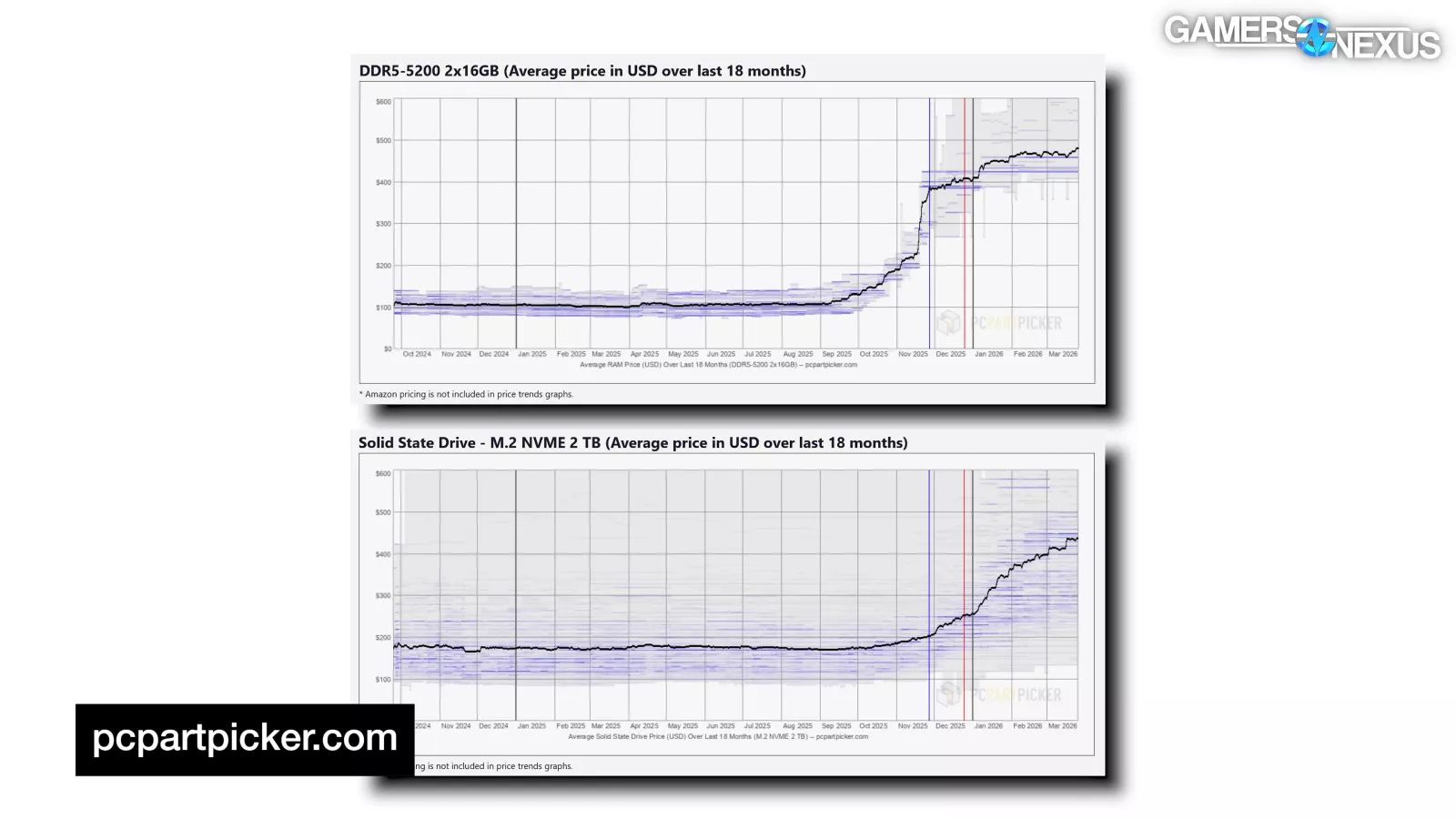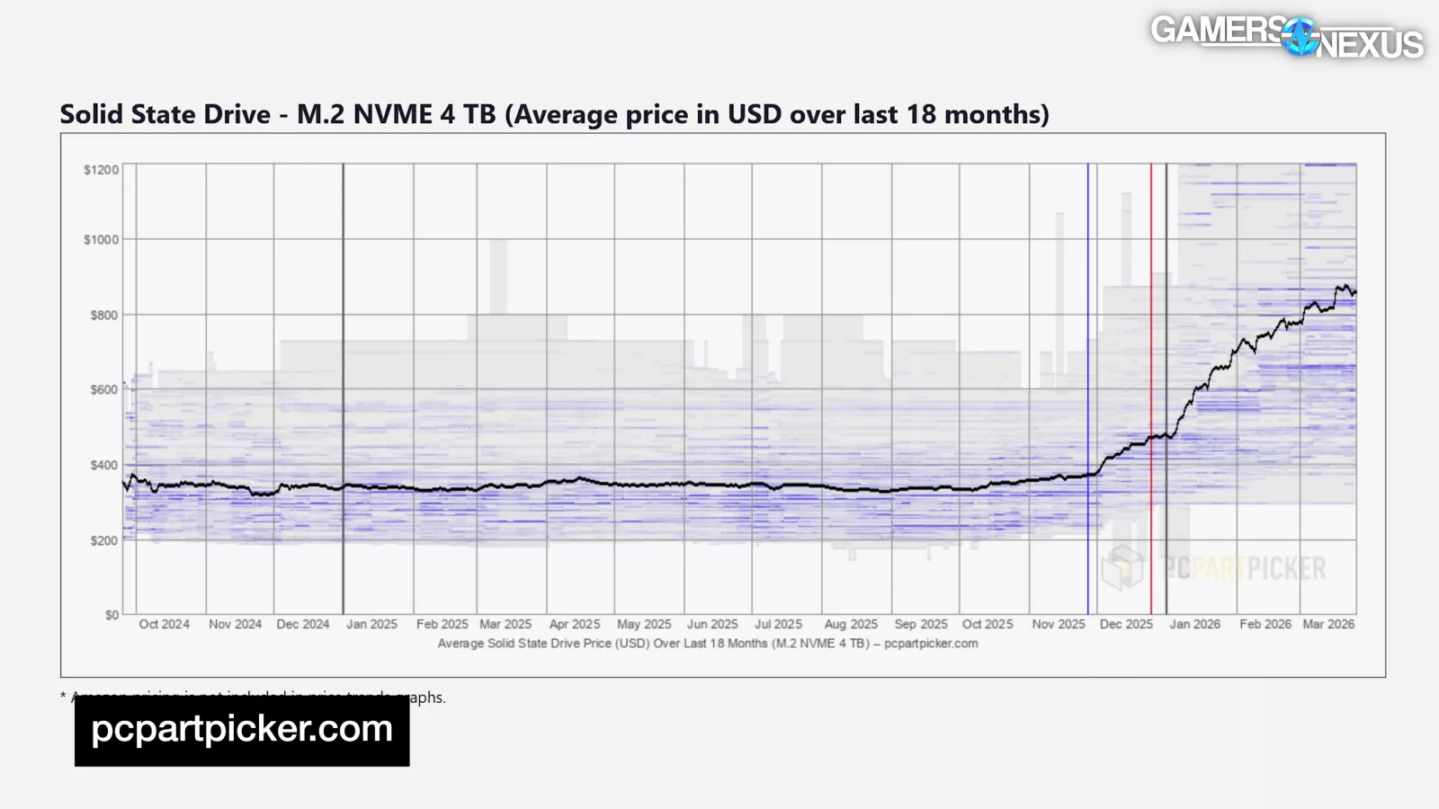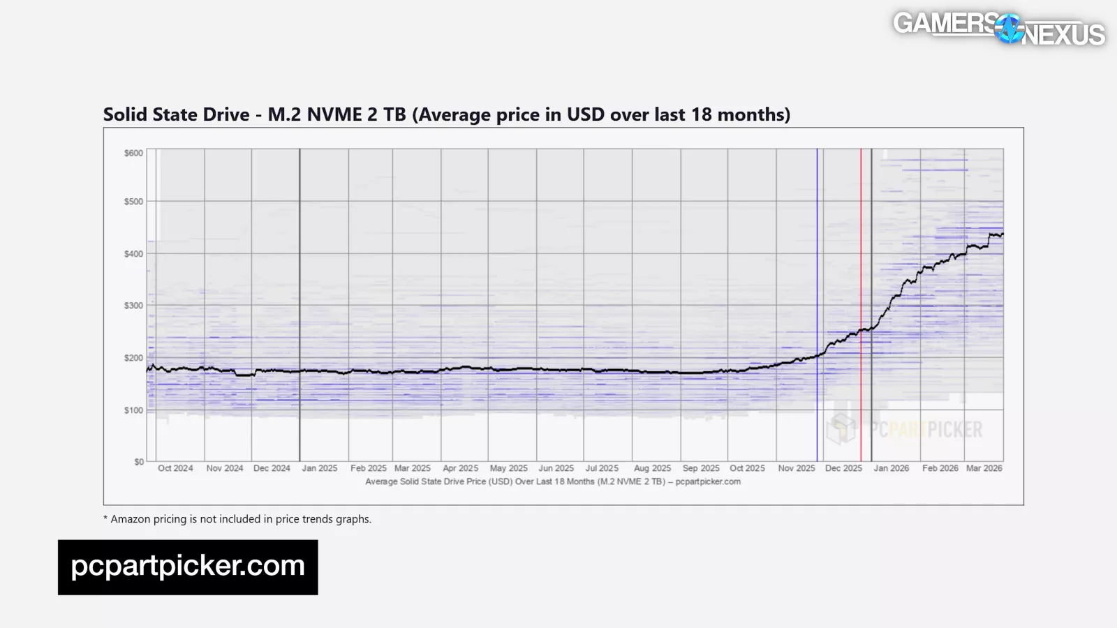 | SSD Price Trend | M.2 NVMe SSD (2 TB) | GamersNexus11/12/2025 to 03/12/2026 | |||