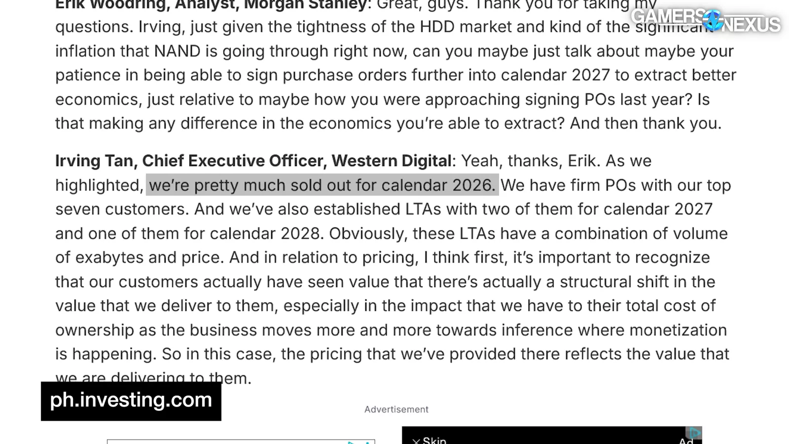 Our conclusion today is simple. SSD prices are absurd, obviously, but it looks like it’ll get worse. Generally, we try not to make any predictions because it’s just us throwing darts at a board. We don’t have any more insight than you, and most of our information is from digging through earnings reports and bank reports, all of which are public.
