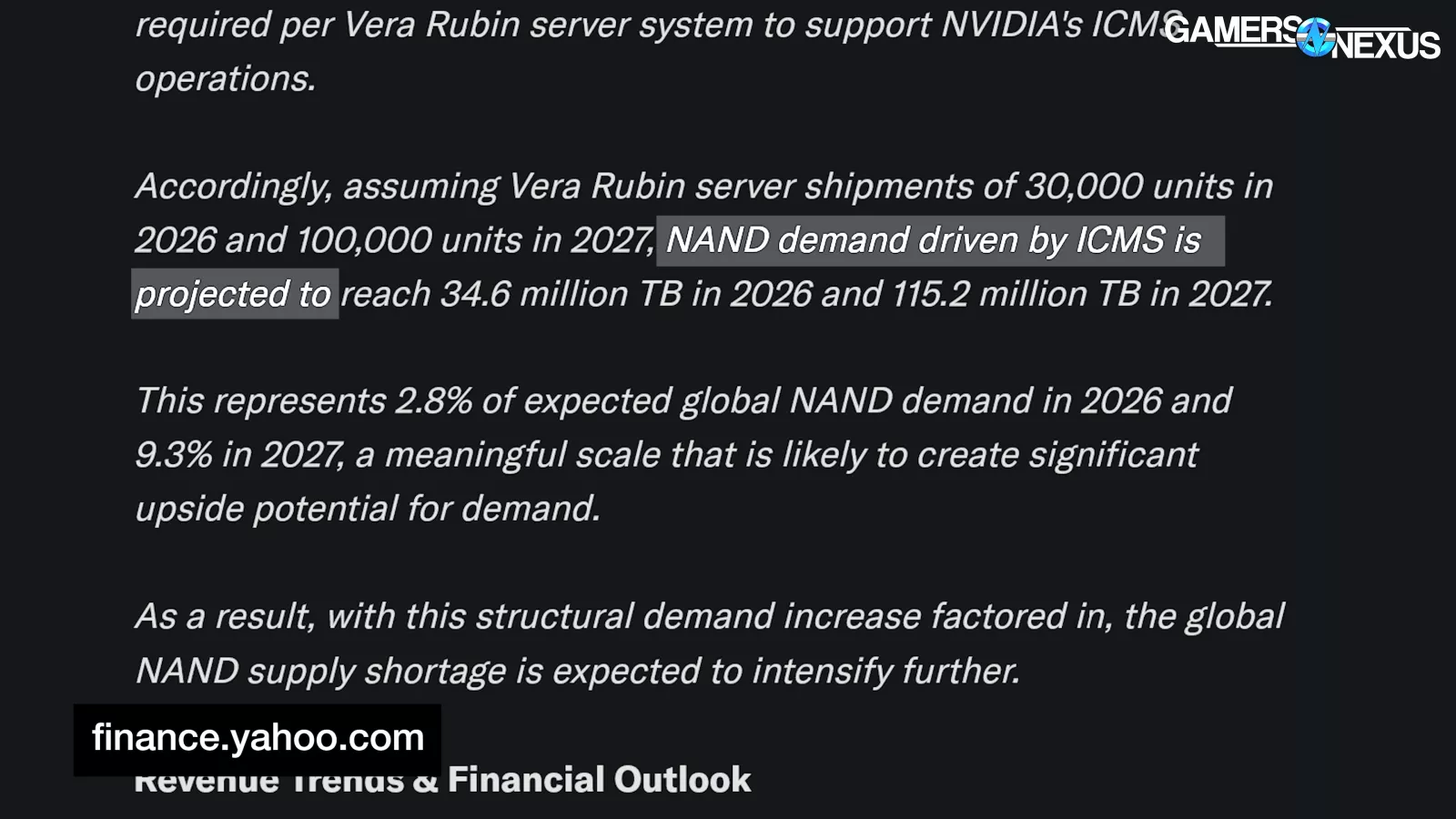 “Accordingly, assuming Vera Rubin server shipments of 30,000 units in 2026 and 100,000 units in 2027, NAND demand driven by ICMS is projected to reach 34.6 million TB in 2026 and 115.2 million TB in 2027.