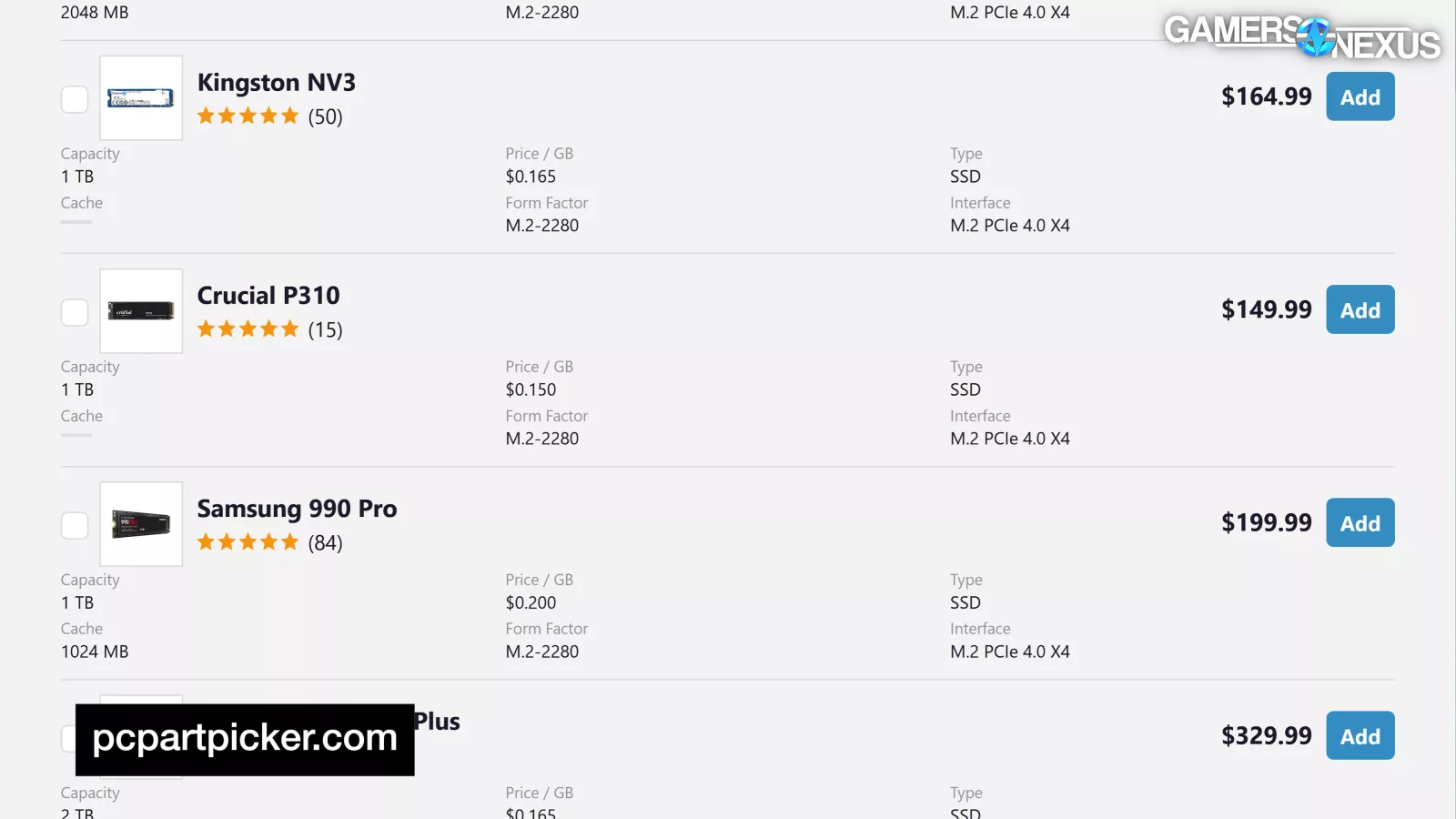 Since November, Crucial’s P310 rose from $145 to $300, making it the lowest priced entry at the time of writing on this table.