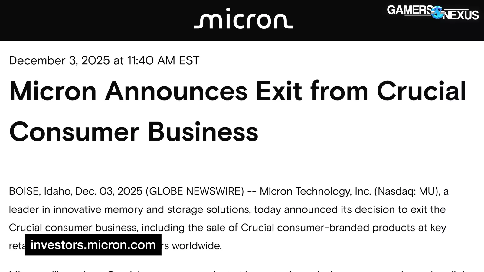Micron recently exited the direct-sale memory business (as in, RAM) for its Crucial line, so there are some other company decisions contributing here.