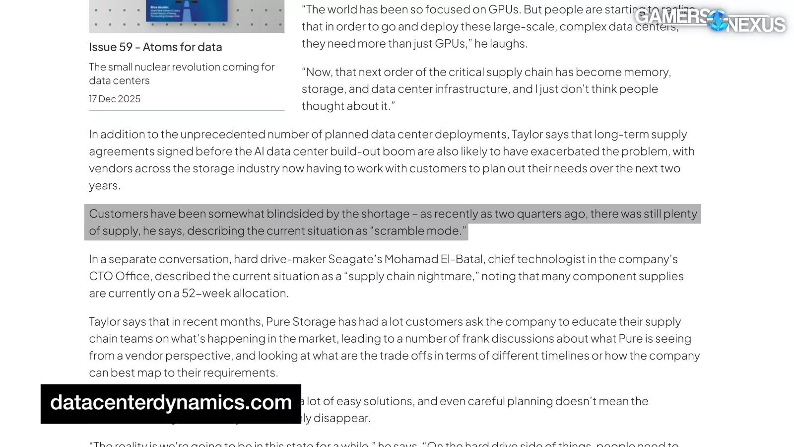 Data Center Dynamics, citing VP of storage provider Everpure (formerly Pure Storage), describes the sudden shift, explaining: