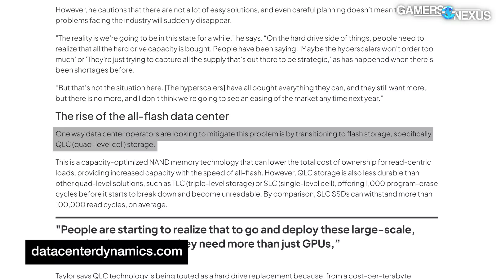 DCD’s report also claims enterprise HDDs “are currently facing lead times of up to two years as manufacturers struggle to keep up with AI demand,” and explains how “one way data center operators are looking to mitigate this problem is by transitioning to flash storage, specifically QLC (quad-level cell) storage.”
