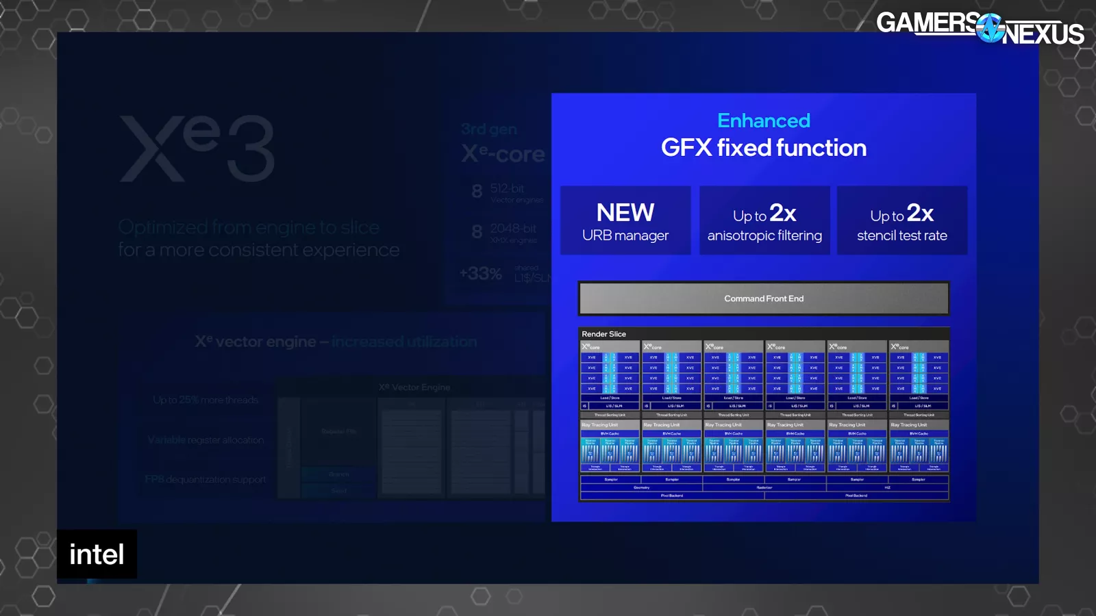 For Xe3, Intel noted to us some of its driver improvements and software control panel focus as well, all of which should benefit the company as it moves toward its eventual dGPU Celestial GPUs.
