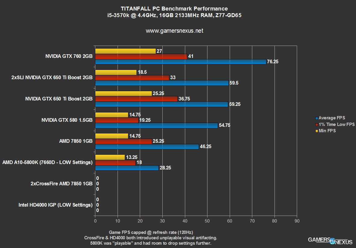When we benchmarked Titanfall on video cards recently, it was clear that the game's beta was just old enough that it was completely sub-optimized for PC performance; as drivers are released and the game is completed, we hope to see significant performance improvements over the beta. The Source engine shouldn't require a 760 to run smoothly, but we'll see how that goes soon enough.