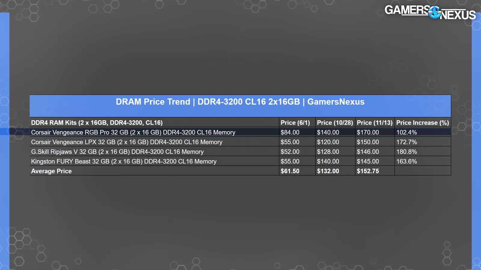 Corsair Vengeance RAM climbed from $135 to $230, seeing a 70% increase.