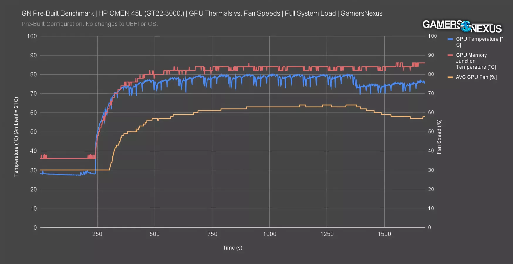HP’s GPU cooler design seems like the most competent aspect of the entire build, but it’s benefitted by the CPU underprovisioning work.