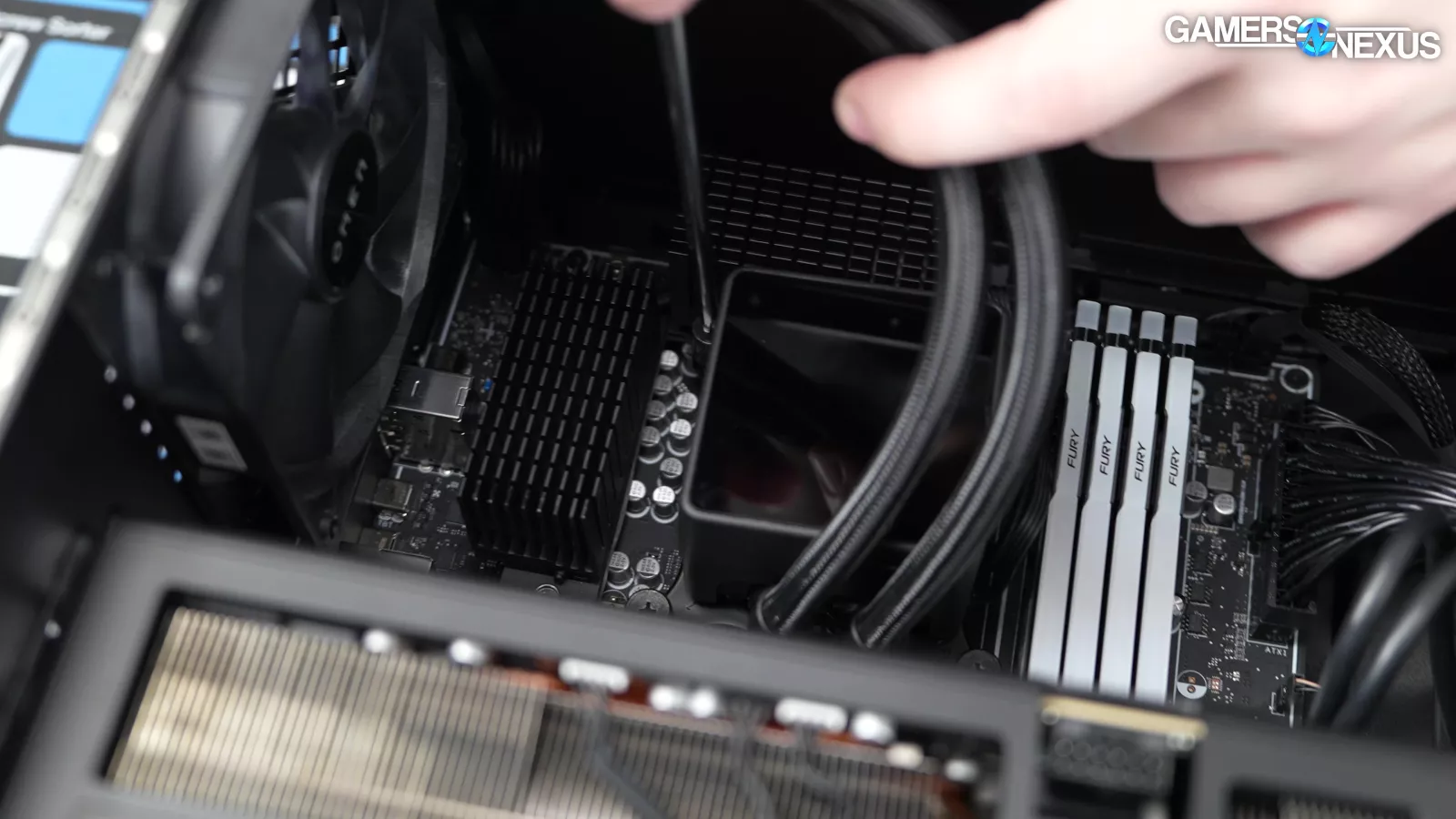 Taking a look inside the case, we noticed that the 12VHPWR cable has some hot glue on it for some reason.