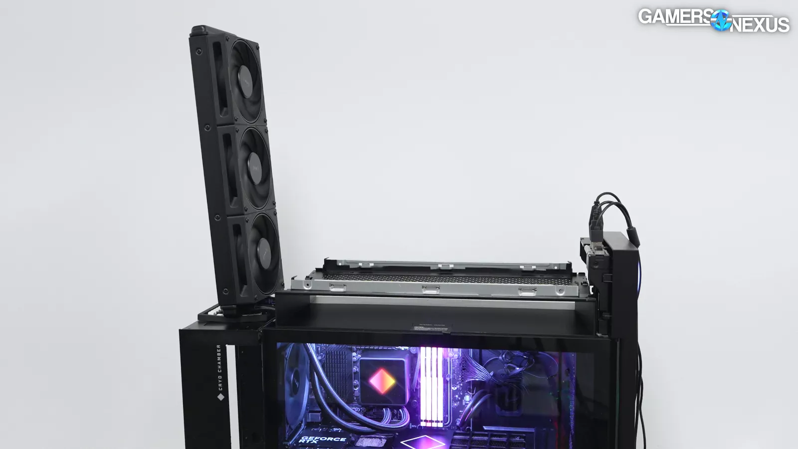 The chamber should prevent any pre-warmed exhaust air from the GPU from impacting CPU cooling. It also means the only way for that GPU exhaust to leave is through the single rear fan.
