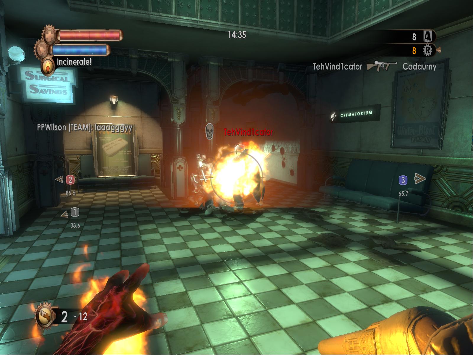 Long Term: With the added multiplayer there is additional incentive to play the game after you have beaten it. The PC version had some hiccups to start with, though impending patches are planned to fix existing lag problems. The Xbox version doesn’t have any problems with multiplayer, and it truly lets you appreciate what 2K Marin did with it. Multiplayer has its own little storyline to it, and of course has several modes of play. It’s nothing earth-shattering, but mindlessly blasting other players with your plasmids and shotguns is unnervingly entertaining.