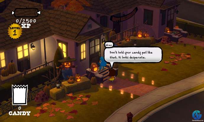 In Costume Quest you play as either Wren or Reynold, depending on which choice you make at the very start of the game, and then you set about your little town trick-or-treating the local residents. All seems well and fine until your sibling (the one you didn't choose, shame on you!) gets kidnapped by some gluttonous monster, firm in his belief that you're all giant pieces of candy. Being the heroic and fearless person you so clearly are, you're given the task of saving your family member through a series of quests and random battles, spanning over three distinct areas and about six hours of gameplay. The battle mechanic is your standard JRPG fair with turn-based attacks (think Final Fantasy). The unique charm of Costume Quest comes with the fact that in this small, strange, little town, whatever costume you happen to be wearing as the battle begins turns into a fully realized version of itself. Your dress determines your effectiveness in battle: whether that's a twelve-foot, missile-armed, robot, a knight, complete with sword and shield glistening in the afternoon sun, or even the Statue of Liberty, you must choose wisely. Costume Quest turns the art of discovering your playstyle into an integral part of gameplay; changing costumes constantly offers a wide array of both aesthetic and strategic combinations. As is usual with an RPG, exactly how long the game will last is entirely dependent on whether or not you're the type of person who completes every single side mission you're given. I am that kind of person. I trick-or-treated on every house available and collected every costume piece the game had to offer and, as such, Costume Quest lasted me a good 6 – 7 hours. Not bad for a downloadable game if you ask me. The gameplay is sprinkled liberally with the sense of humour we've all come to expect from Double Fine. Despite a lost connection between most gamers and the main character, a young child, I found myself laughing out loud on various occasions. Not that it surprised me, not at all, it's just good to know that Tim Schafer can still make me laugh - even after all these years.
