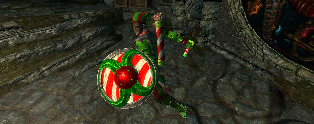If you've ever had a craving to smash someone's head in with a candy cane, you should probably see a doctor. You should also download this mod, though. This one replaces Akaviri Katanas, glass daggers, and hunting bows with a festive retexture; as an added bonus, combine this mod with the Festive Armor mod for the full "murderous, overworked workshop elf" effect.
