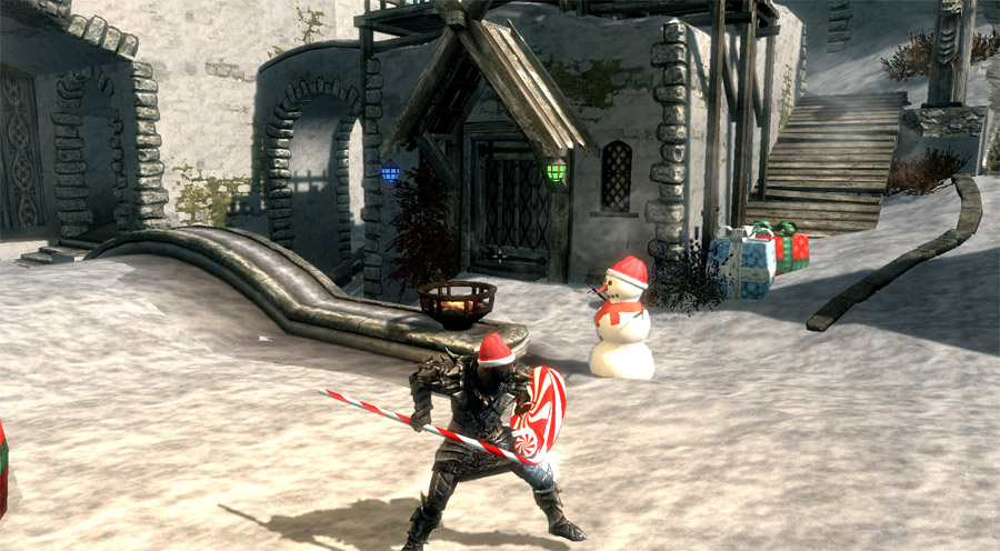 Perhaps one of the more ambitious mods, Christmas in Whiterun adds a snowy theme to the city's streets, hosts wrapped packages throughout the town, and features a large, decorated tree in the city square. Snowmen, gingerbread men, and lights are present along Whiterun's streets.