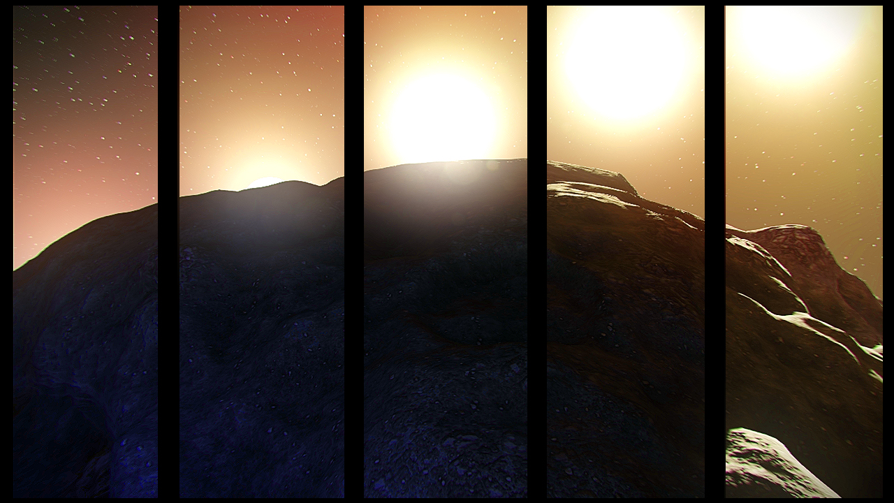 "The thing I love the most about our engine is the stereo 3D rendering capability. There is something to be said about roaming around on a desolate asteroid where you can peer into the depths of space while also looking at the little cracks on the ground and see a vast distance between the two without the need to move the camera.