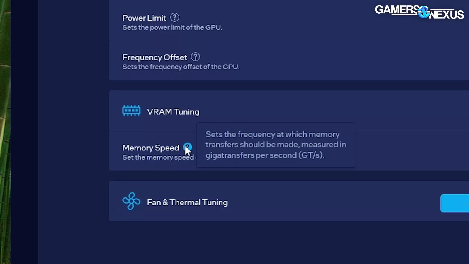 To wrap up our UI complaints, the VRAM Tuning tooltip doesn’t agree with the slider. The tooltip and the slider represent memory frequency with both GT/s and Gbps, which can be confusing for some users.