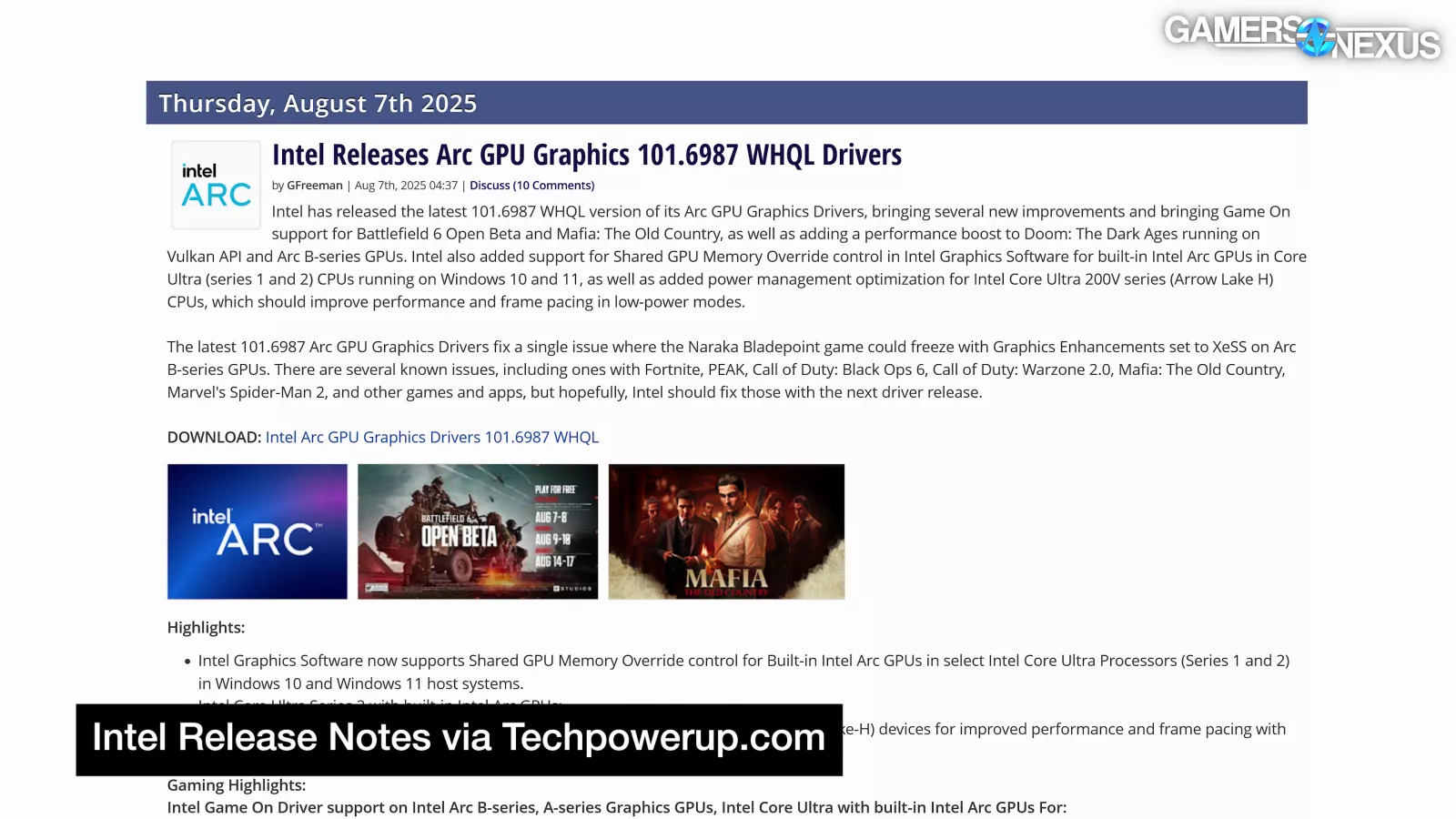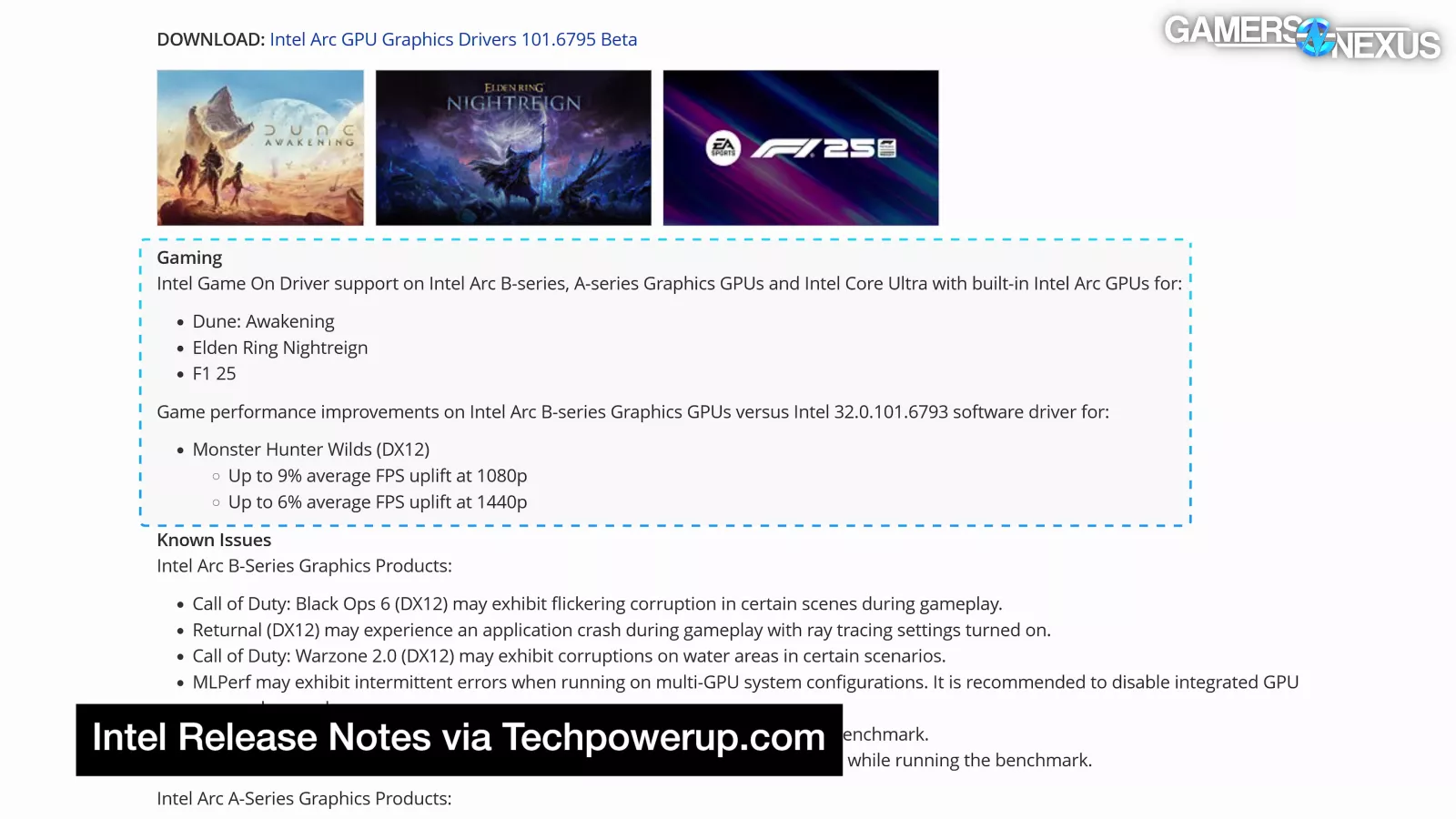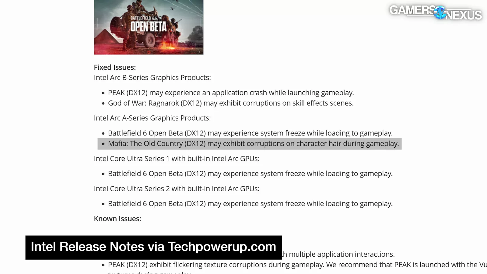 | Intel Arc Graphics Fixed Issues | GamersNexus | |