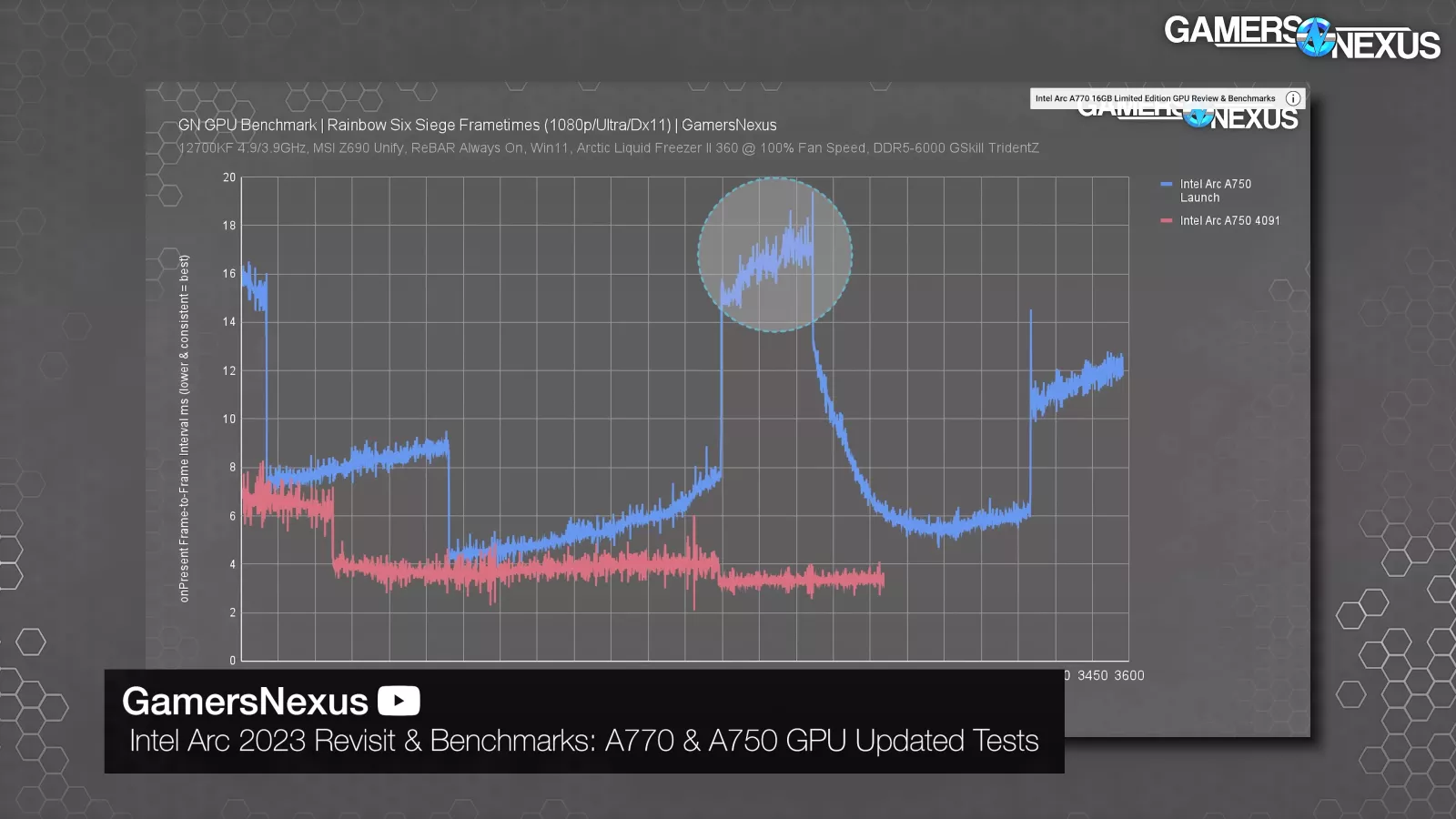 We covered Intel’s severely bugged Rainbow Six Siege behavior previously. The game was wildly inconsistent on Arc, where frametimes would sporadically double, or in other words, the framerate would sporadically halve.