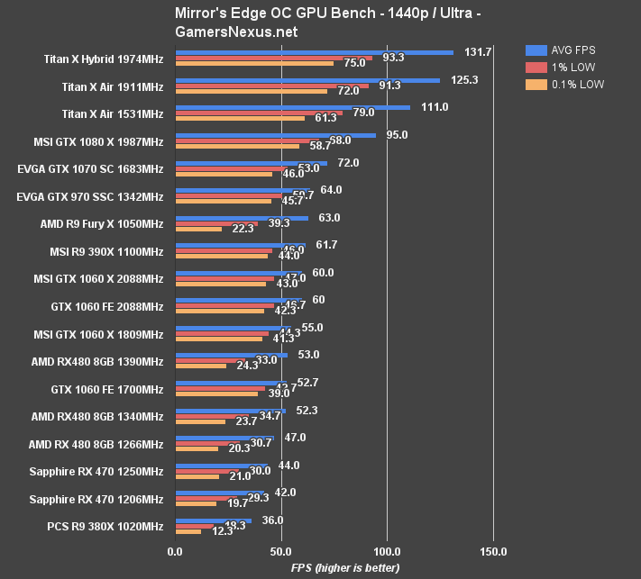 We'll talk about this more in our imminent Titan X (Pascal) review, now that we've had a generous reader loan us the card (thanks, Sam!), but this condensed FPS OC results chart will provide a quick preview of what's to come: