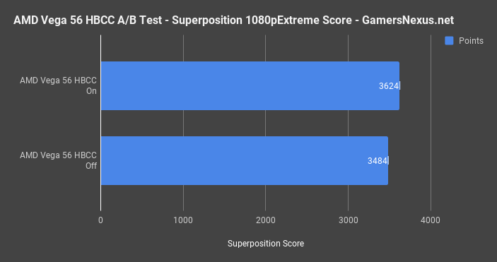 HBCC Off results in a score of 3484 points in Superposition, as opposed to 3624 with HBCC enabled. The performance difference amounts to 4% improvement, which is the biggest we’ve measured thus far; of course, we’re so bound by other elements of the card – like the core and streaming processors – that a 4% improvement is only represented by a 1FPS increase.