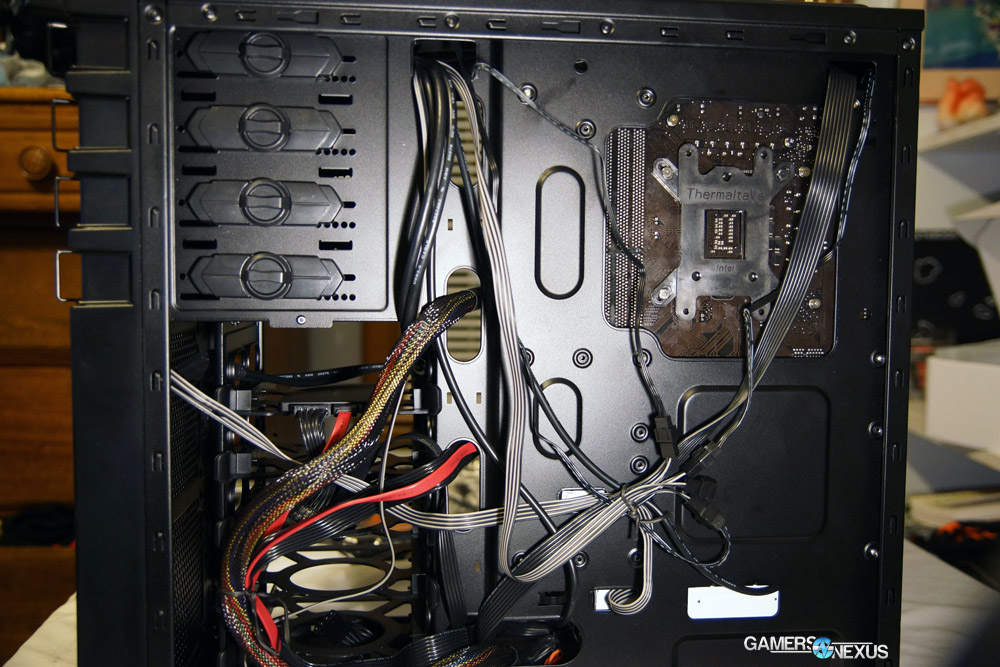 I maintain that the build quality of the GX700—like the R5/200R—is pretty remarkable given its relative affordability. When matched against the more expensive Armor Evo? It looks like a damn masterpiece. Cable management is pretty excellent, installation is standard and easy, cooling is average to above average (depending), and the full unit is compact and tidy.