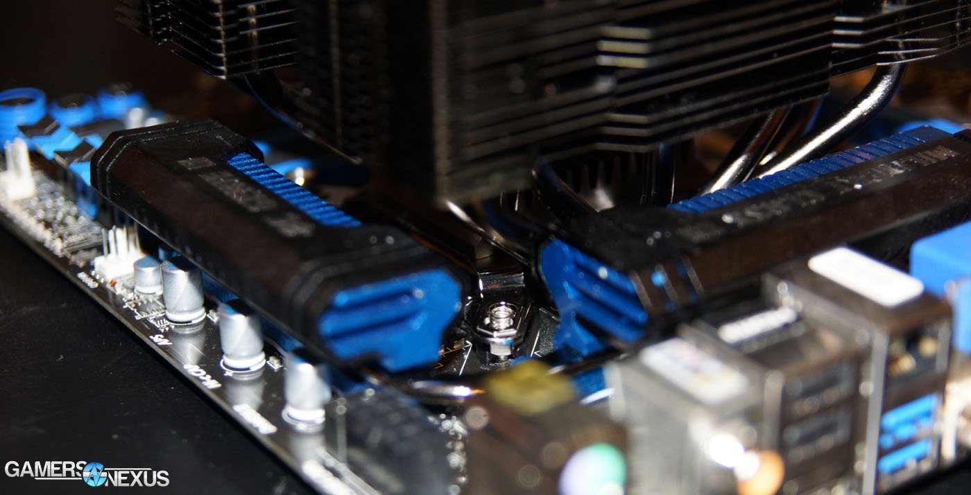 The problem with the Dark Rock Pro 3 is an obvious one: It's effing big. Using a motherboard with flanking VRM heatsinks guarantees a painful night of cooler mounting. Anyone demanding this type of hardware will certainly be on a board with VRM sinks, too.
