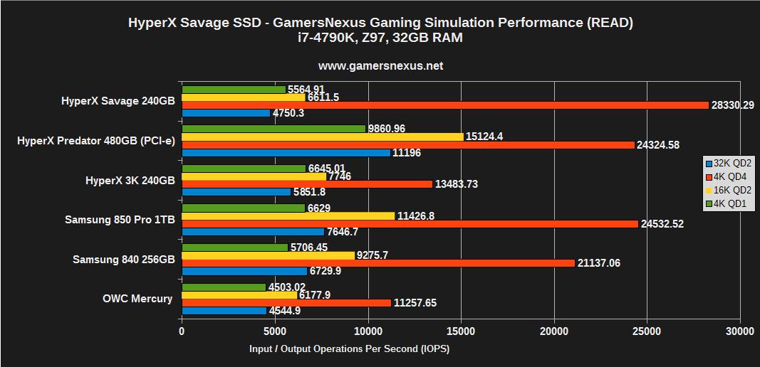 What I'm saying is this: As long as the controller offers strong garbage collection and wear-leveling features (which all the listed SSDs in this review do), the NAND is durable, and the SSD is reasonably fast, it's going to be acceptable for the vast majority of users and nearly all gaming-exclusive users. If you're looking at the Samsung 850 Pro, HyperX Savage, and the Crucial MX100 or MX200, there's really not a wrong choice sans professional business operations. Looking to the PCI-e SSDs, like the HyperX Predator, we see gains primarily in copy transactions (very measurable gains – users doing mass media transfers regularly will want a PCI-e SSD); outside of this, we're just being bottlenecked in too many other software stack locations to care about an SSD that pushes 10% more IOPS than a competitor.