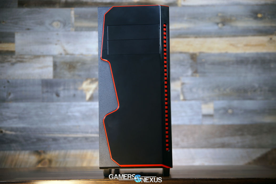 Rosewill's Gungnir is designed with a 'loud' approach to aesthetics, if we're falling prone to synesthesia. That can certainly be a good thing, but it's not well-executed in this instance. The front panel comes across as something designed following a two-minute tutorial of the 'pen tool' in Photoshop (in fact, we recreated it – see 3:13 in video), and while we normally refrain from aesthetics discussion, the Gungnir is too disjointed in its presentation to ignore.