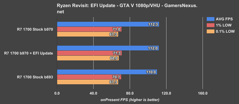 With the R7 1700, Metro: Last Light shows no benefit from strictly performing an EFI update on the Crosshair VI. We’d need to actually use updated features, as AGESA updates were not enough to impact performance here.