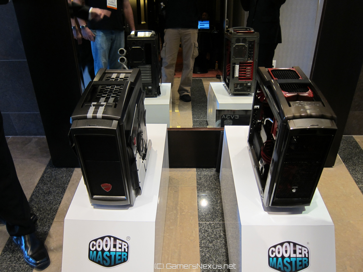 CM also brought along a couple of their vapor chamber-designed air cooling units, which we expand upon heavily in our article about CPU cooler engineering. If you haven't looked into vapor chamber cooling, check out the vertically-mounted vapor chambers in the TPC 812 and the horizontally-mounted chamber that makes direct contact to the CPU IHS on the V4 GTS. Cooling results on these units have been on-par or better than competitors for a reasonable price.