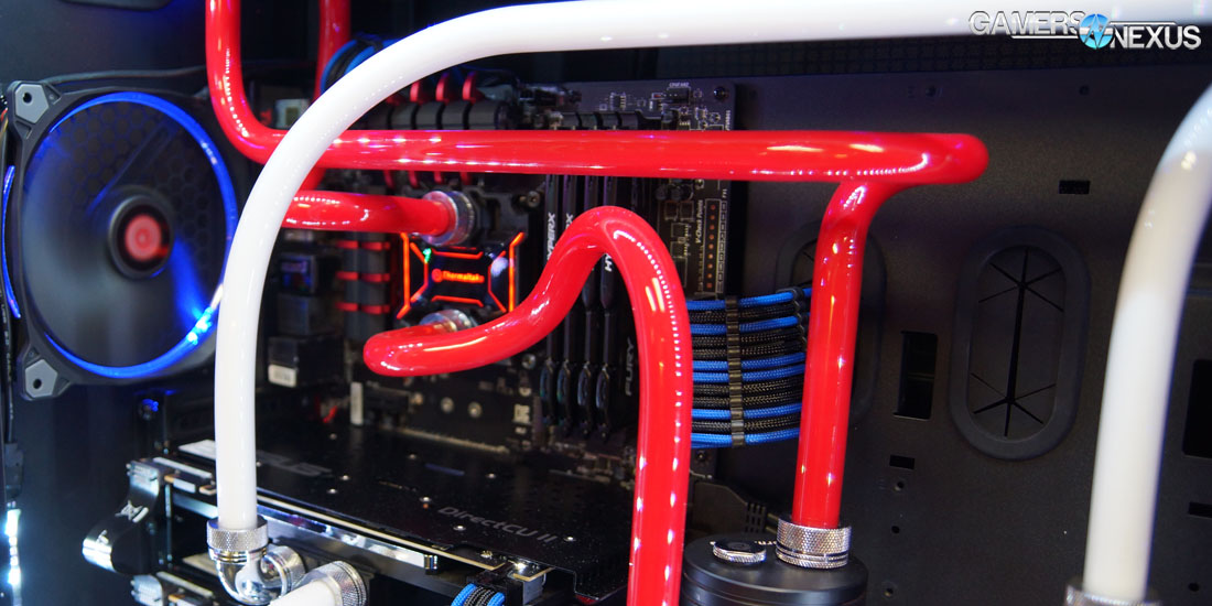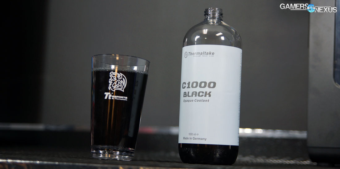 As a brief aside, Thermaltake also has a new black liquid for custom loops. This new tone of black doesn't contain the same off-blue and off-purple base that most black liquids have. If that matters to you, they're excited about the new color.