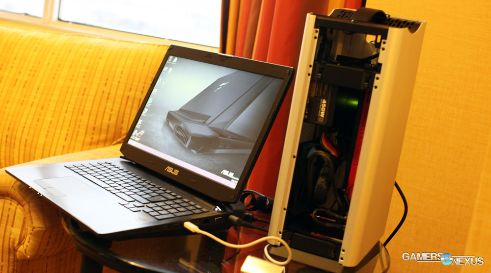 This is useful for a few reasons. In situations where you want a light/portable laptop, but need some gaming or video encoding prowess when home, you’ll be able to connect the external video card at home and convert your laptop into a desktop. That’s the idea, anyway.