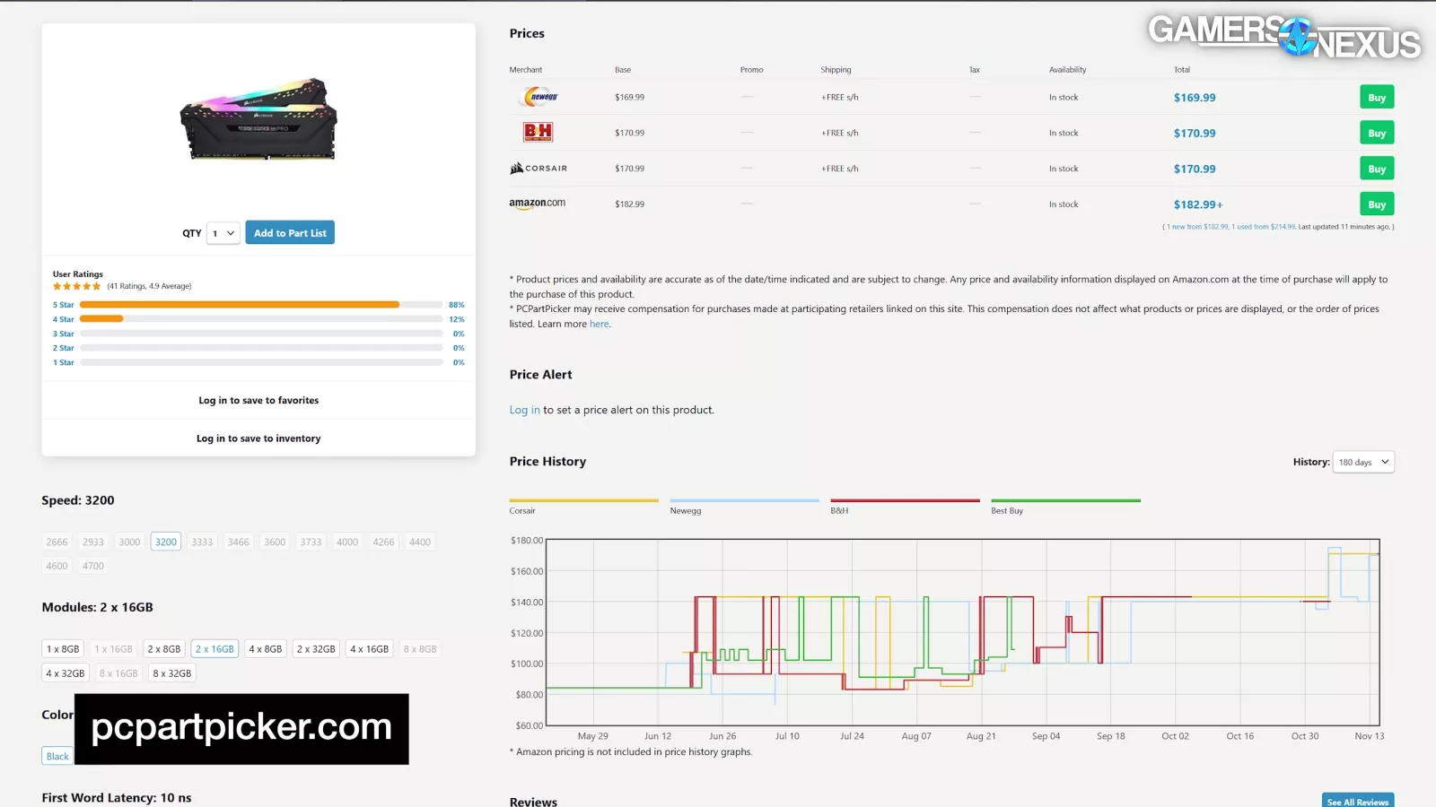 We’ll focus on kits of 2 x 16GB DDR4-3200 CL16 with an expanded date range of June 1st to November 13th. There was the most data for this spec. So that’s why we chose it.