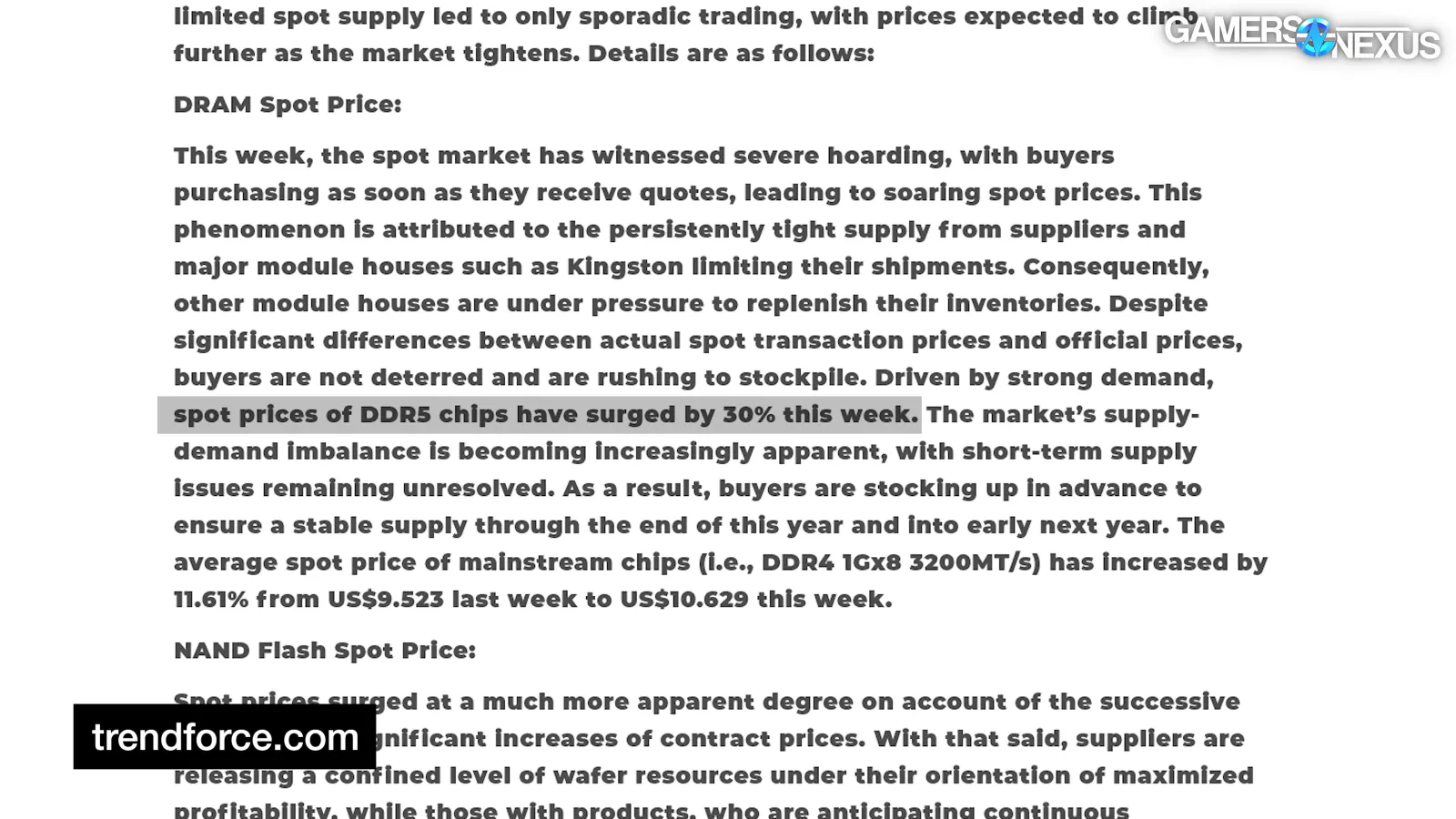 While it’s not shown in the chart, TrendForce claims DDR5’s price inflated by 30% in the same week. The analysis firm attributed the rapid increases to “severe hoarding” as buyers rush to stock supplies.