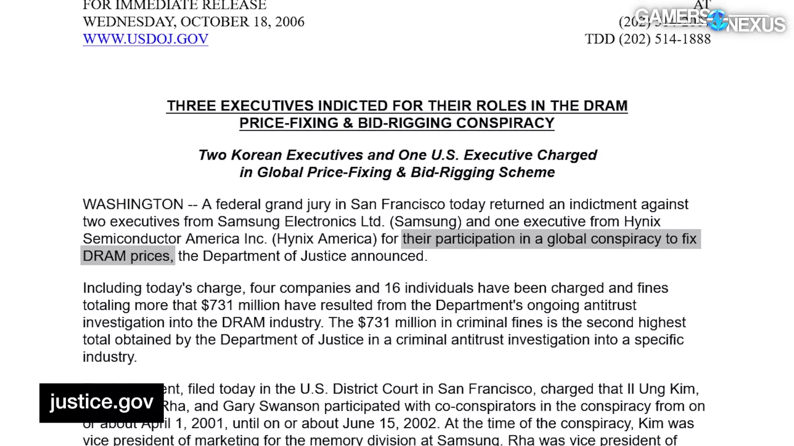 In 2006, the Department of Justice indicted two executives from Samsung and one from SK Hynix for “their participation in a global conspiracy to fix DRAM prices,” after evidence showed that the competitors had basically agreed on pricing together.