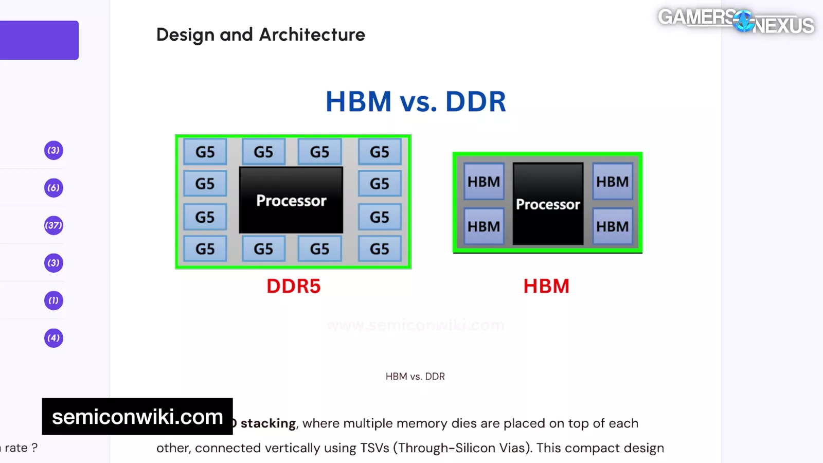 Instead of memory modules laid side-by-side, like on a RAM stick or around a GPU, HBM stacks the memory dies and is able to pack them into a denser area, often onto an interposer, to get them closer to the GPU or CPU.