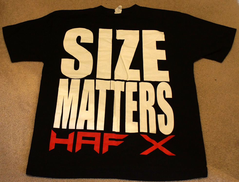 You get this awesome Men's XL heavy-weight Cooler Master T-Shirt! The shirt reads "Size Matters / HAF X" in white and red on black. The back of the shirt has small Cooler Master and CM Storm logos.